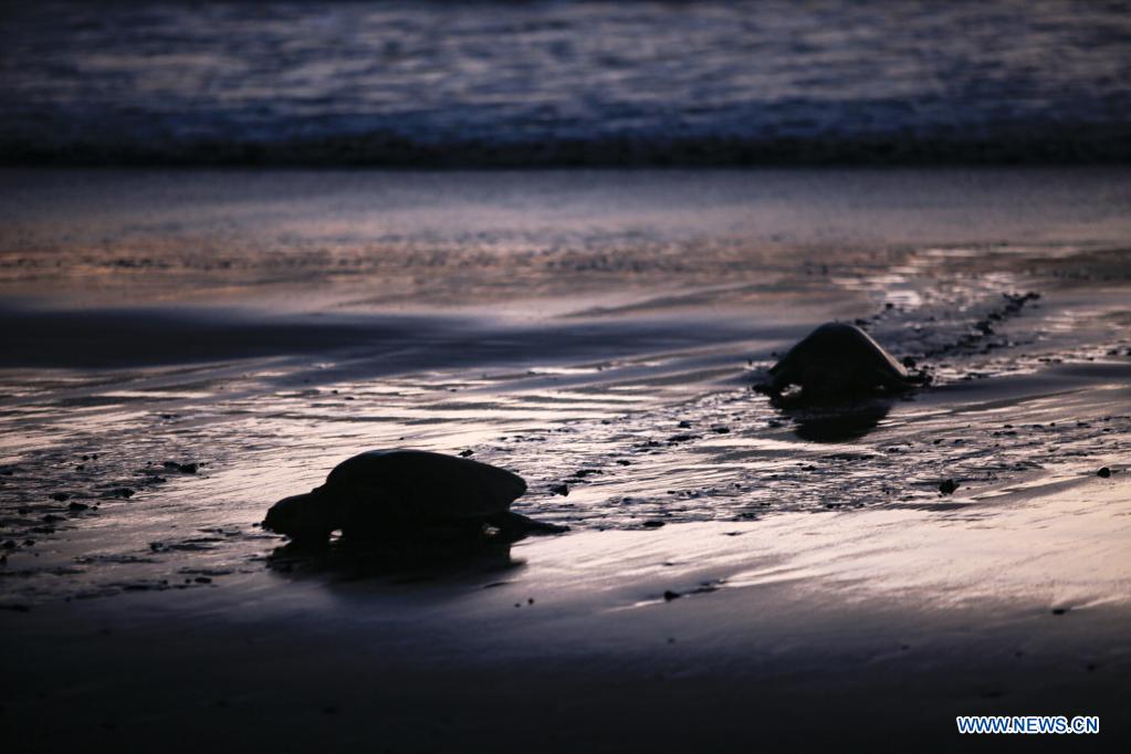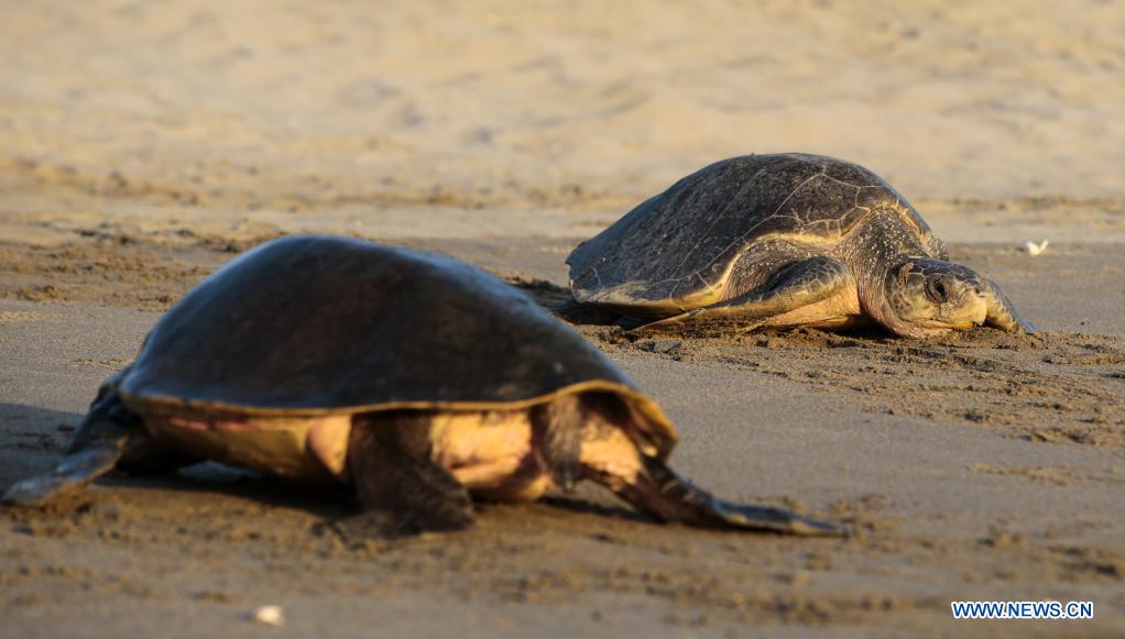 SAN JUAN DEL SUR, 5 noviembre, 2021 (Xinhua) -- Tortugas paslama arriban a la Reserva Natural Playa La Flor para desovar, en San Juan del Sur, Nicaragua, el 5 de diciembre de 2021. La Reserva Natural Playa La Flor es un santuario natural donde las tortugas paslama arriban masivamente 7 veces al año para desovar entre los meses de julio a enero. (Xinhua/Oswaldo Rivas)