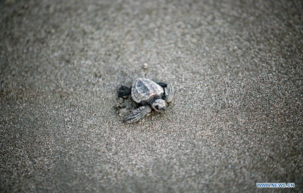 SAN JUAN DEL SUR, 5 noviembre, 2021 (Xinhua) -- Imagen del 5 de diciembre de 2021 de una cría tortuga paslama en la Reserva Natural Playa La Flor, en San Juan del Sur, Nicaragua. La Reserva Natural Playa La Flor es un santuario natural donde las tortugas paslama arriban masivamente 7 veces al año para desovar entre los meses de julio a enero. (Xinhua/Oswaldo Rivas)