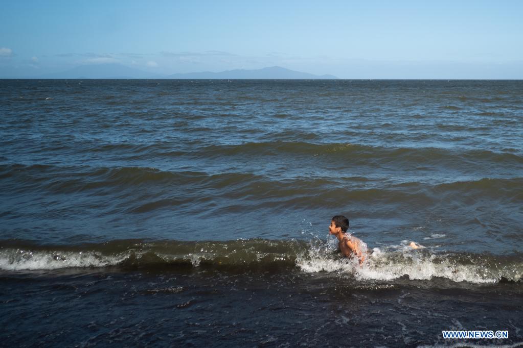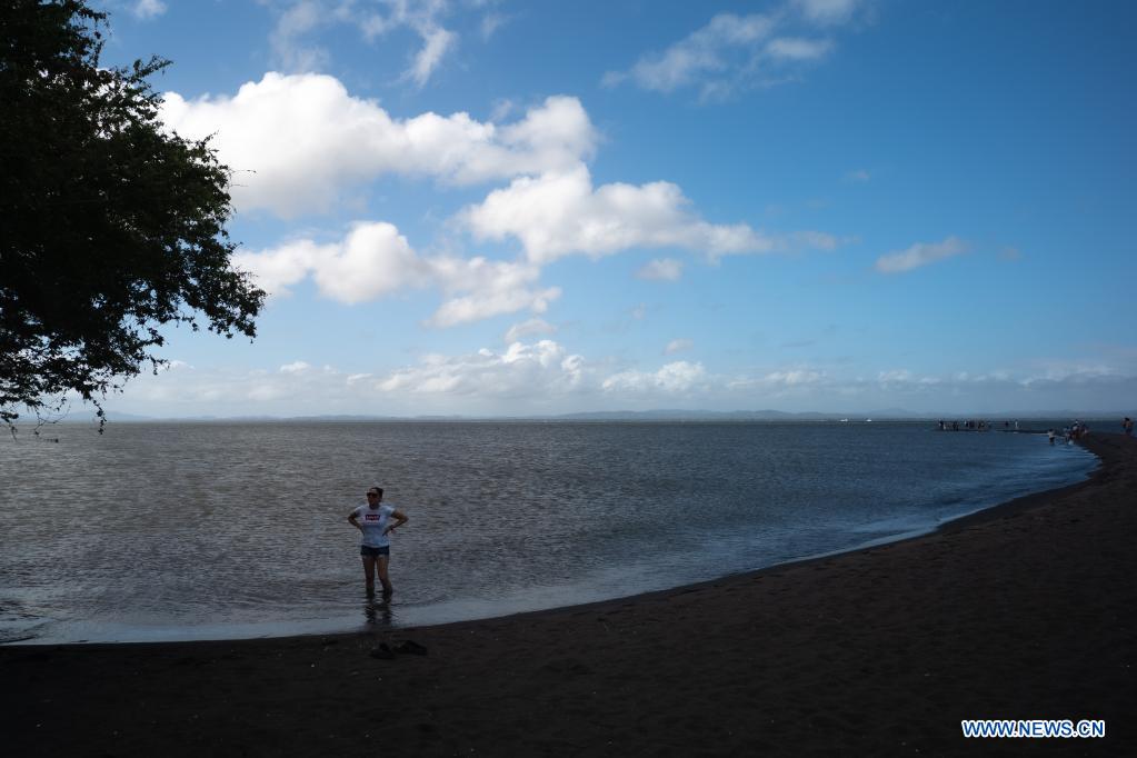 MANAGUA, 21 diciembre, 2021 (Xinhua) -- Imagen del 19 de diciembre de 2021 de un visitante en la orilla de la isla de Ometepe, en el Gran Lago de Nicaragua, Nicaragua. La Isla de Ometepe, ubicada en el Gran Lago de Nicaragua, en el suroeste de Nicaragua, es un destino turístico popular por su hermoso paisaje y su rica diversidad de especies. (Xinhua/Xin Yuewei)