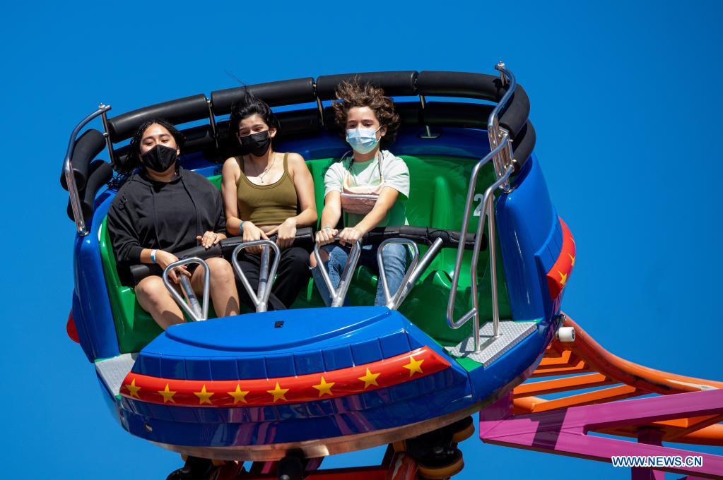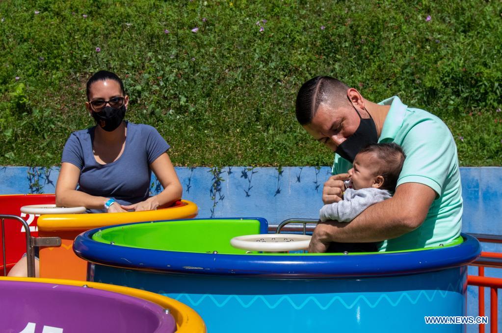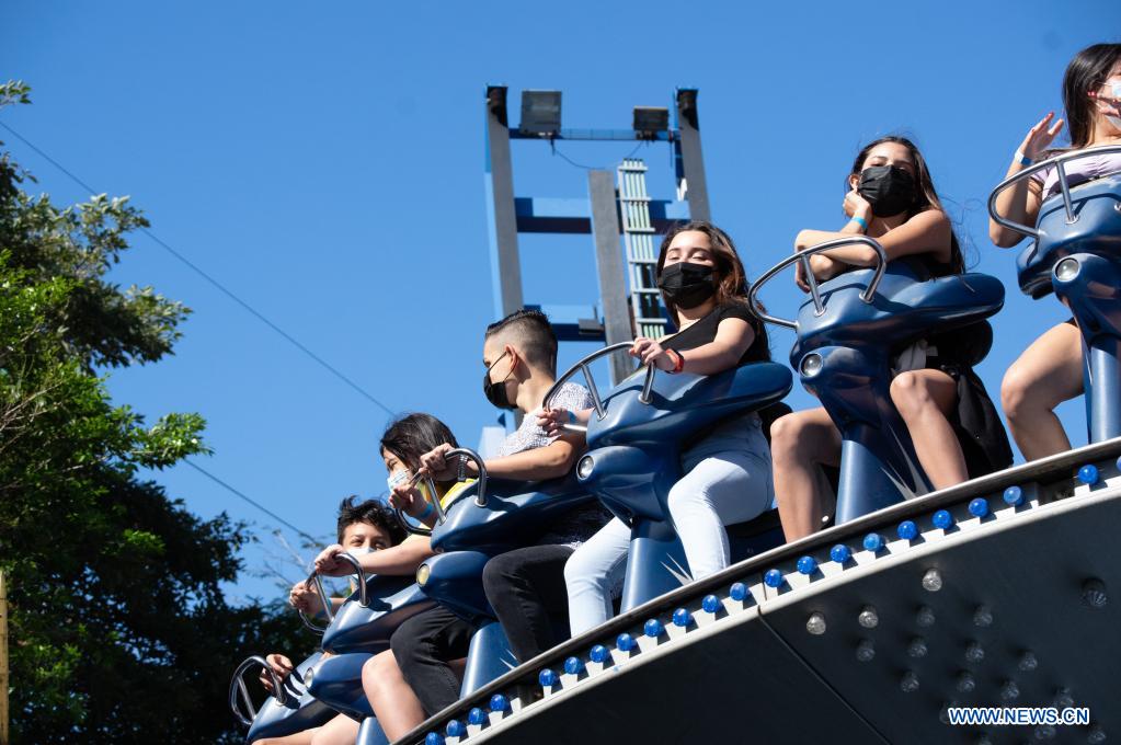 SAN JOSE, 29 diciembre, 2021 (Xinhua) -- Visitantes se divierten en un juego en el Parque Nacional de Diversiones, en el distrito de La Uruca, en San José, Costa Rica, el 29 de diciembre de 2021. El parque de diversiones inició su reapertura el miércoles bajo estrictos protocolos de salud aprobados por las autoridades del Ministerio de Salud del país luego de 20 meses de permanecer cerrado. (Xinhua/Esteban Dato)