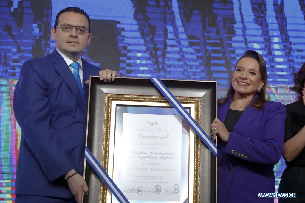 TEGUCIGALPA, 30 dic (Xinhua) -- El Consejo Nacional Electoral (CNE) de Honduras entregó hoy jueves a Xiomara Castro la credencial que la acredita como presidenta electa del país, al vencer en los comicios del 28 de noviembre anterior.