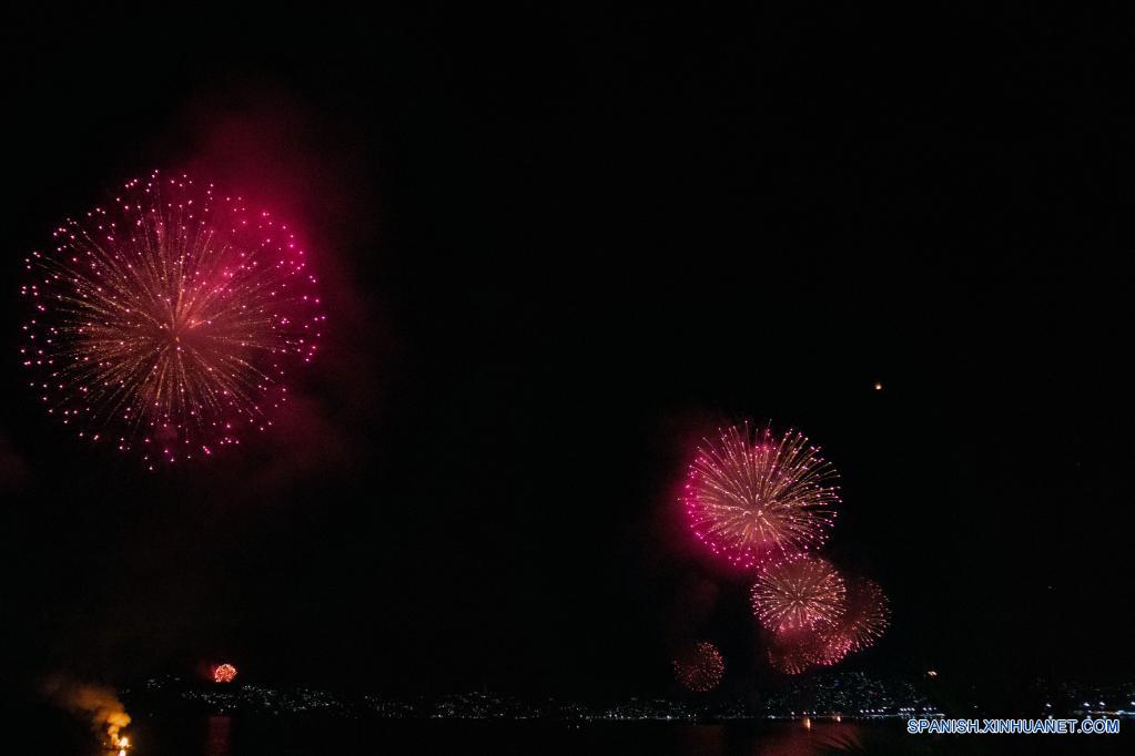 GUERRERO, 1 enero, 2022 (Xinhua) -- Imagen del 1 de enero de 2022 de fuegos artificiales durante la celebración de Año Nuevo, en Acapulco, estado de Guerrero, México. (Xinhua/Franyeli García)