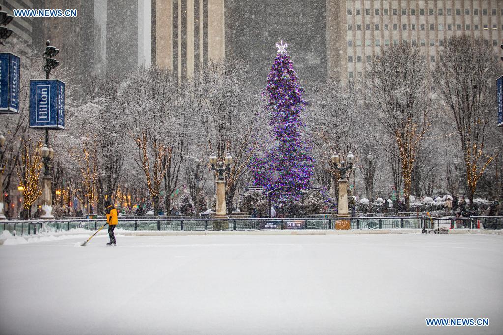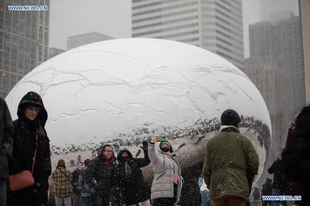 CHICAGO, 2 enero, 2022 (Xinhua) -- Imagen del 1 de enero de 2022 del Millennium Park, en el centro de Chicago, Estados Unidos. Una tormenta invernal azotó el sábado a Chicago, y se espera que la acumulación de nieve alcance entre 10 y 18 centímetros. (Xinhua/Vincent D. Johnson)