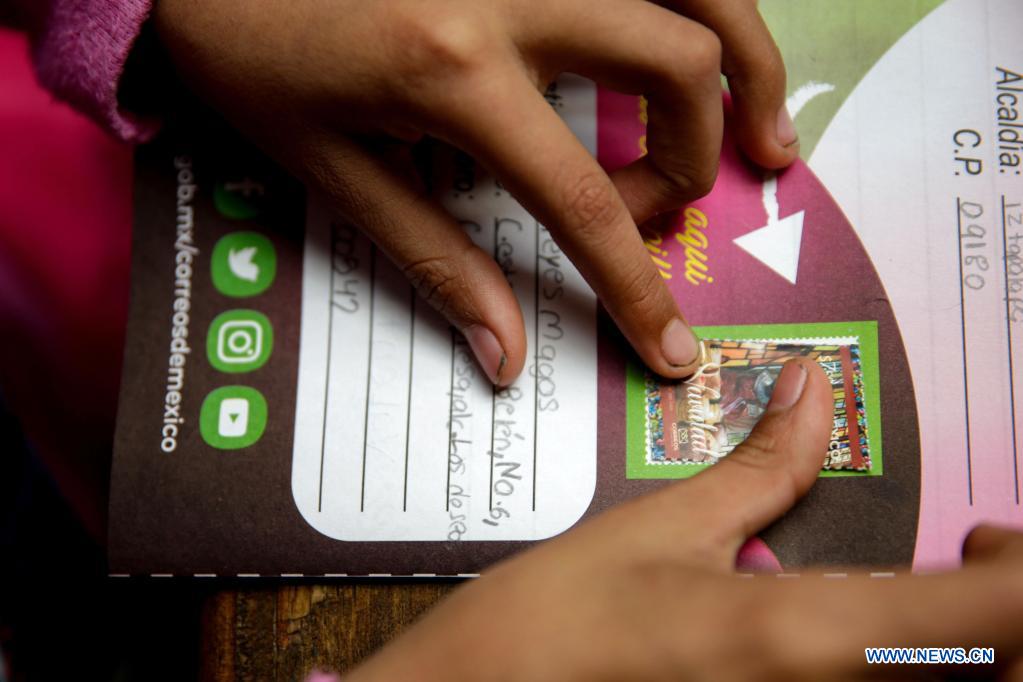 CIUDAD DE MEXICO, 4 enero, 2022 (Xinhua) -- Un niño coloca un timbre postal en una carta para los Reyes Magos en el Palacio Postal, en la Ciudad de México, capital de México, el 4 de enero de 2022. (Xinhua/Francisco Cañedo)