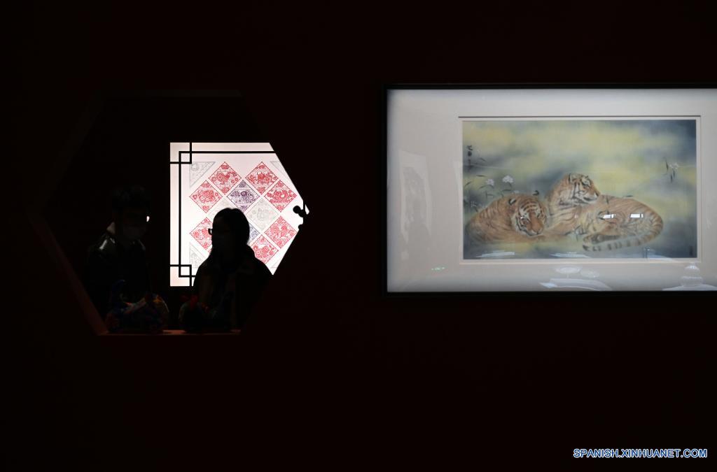 BEIJING, 19 enero, 2022 (Xinhua) -- Imagen del 19 de enero de 2022 de una obra exhibida durante la exposición con temática de tigre en el Museo Nacional de China, en Beijing, capital de China. Al acercarse el Año del Tigre, el miércoles se abrió al público la exposición El Tigre como Talismán: Año Nuevo Chino 2022, con una selección de obras de arte que muestran el tigre en la cultura china. (Xinhua/Jin Liangkuai)