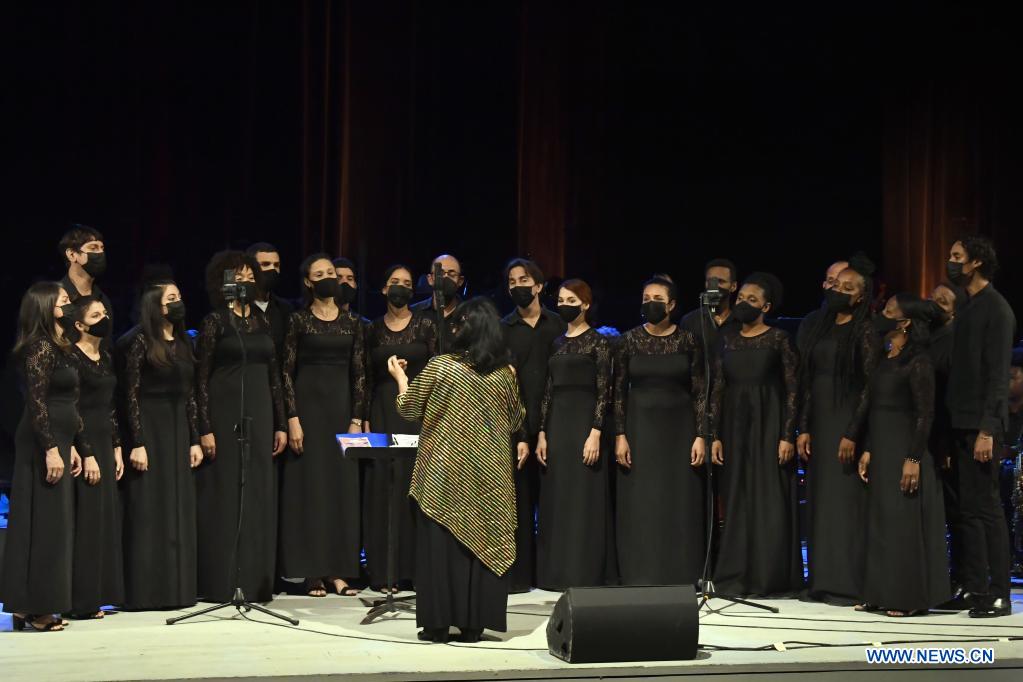 LA HABANA, 24 enero, 2022 (Xinhua) -- Imagen del 23 de enero de 2022 del Coro Entrevoces presentándose durante la clausura de la 37ª edición del Festival Internacional "Jazz Plaza", en La Habana, capital de Cuba. La 37ª edición del Festival Internacional "Jazz Plaza" concluyó el domingo en la noche con un concierto en la sala Covarrubias del Teatro Nacional de Cuba en La Habana. (Xinhua/Joaquín Hernández)