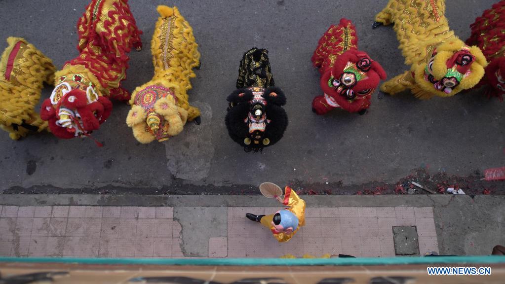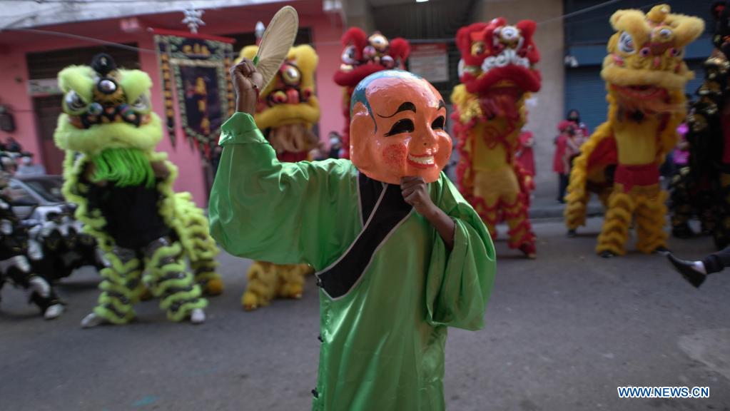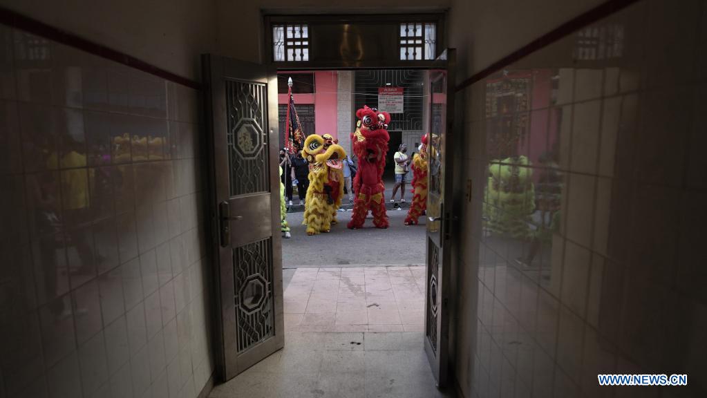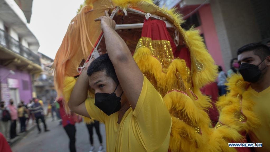 CIUDAD DE PANAMA, 1 febrero, 2022 (Xinhua) -- Un bailarín participa en la celebración del Año Nuevo Lunar chino en el antiguo Barrio Chino, en la Ciudad de Panamá, capital de Panamá, el 1 de febrero de 2022. A partir del martes se iniciaron varios actos culturales por la celebración del Festival de la Primavera, también conocido como el Año Nuevo Lunar y reconocido por Panamá por primera vez un "evento país". (Xinhua/Mauricio Valenzuela)