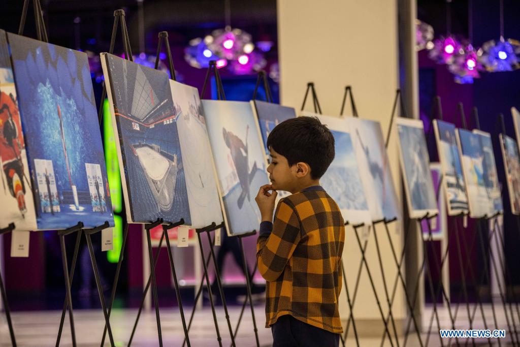 NUEVA YORK, 1 febrero, 2022 (Xinhua) -- Imagen del 31 de enero de 2022 de un niño visitando una exposición fotográfica con temática de los Juegos Olímpicos de Invierno de Beijing 2022 en un centro comercial, en East Rutherford, Nueva Jersey, Estados Unidos. (Xinhua/Zhou Huanxin)