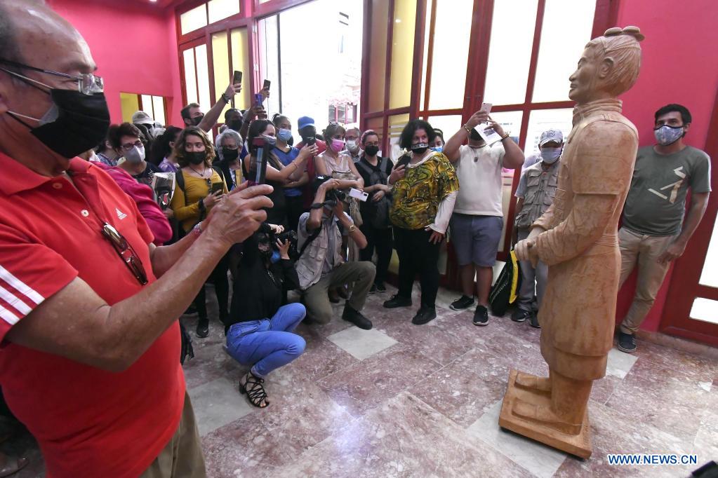 LA HABANA, 11 feb (Xinhua) -- La réplica de un guerrero de terracota quedó emplazada en la sede del Instituto Confucio de La Habana, en pleno corazón del Barrio Chino de la capital de Cuba, y ahora resguarda de manera simbólica esa institución docente.