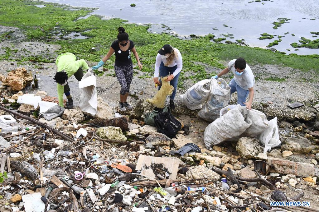 LA HABANA, 14 feb (Xinhua) -- El grupo "Red Verde", creado en octubre de 2021 y conformado por jóvenes ambientalistas, realiza acciones de saneamiento del área de la desembocadura del Río Quibú, en la capital cubana, en el cual se vierte gran cantidad de desechos.