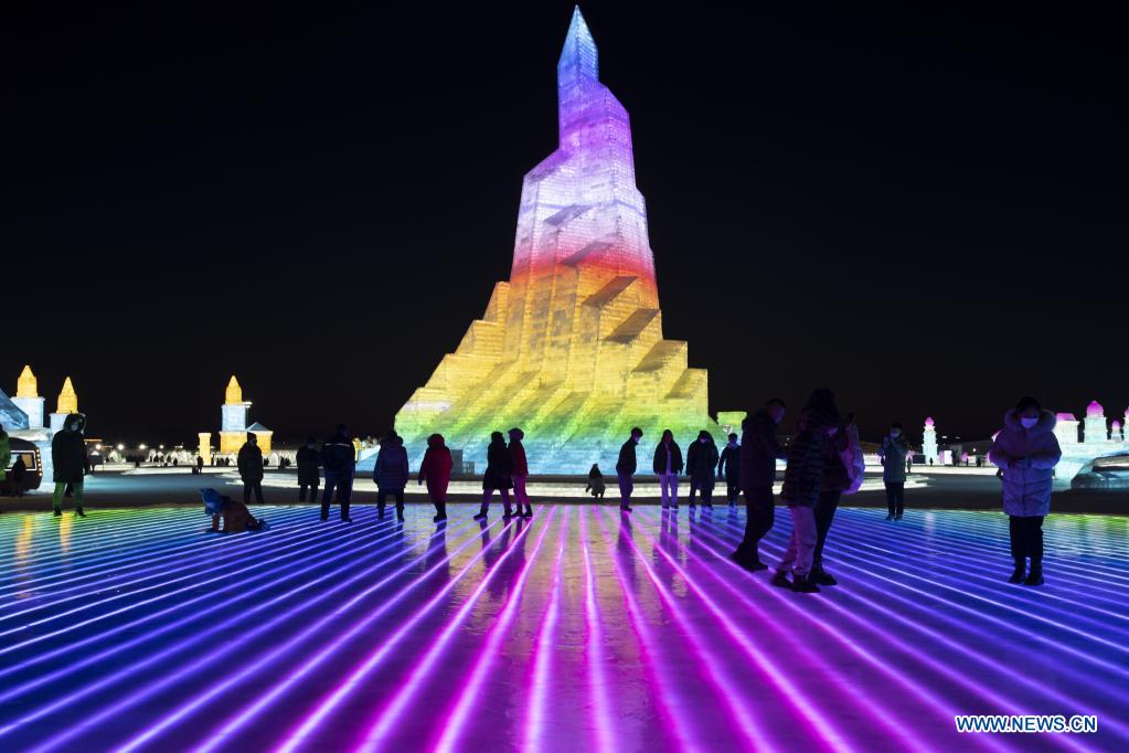 HARBIN, 27 febrero, 2022 (Xinhua) -- Turistas visitan el Mundo de Hielo y Nieve de Harbin, en Harbin, provincia de Heilongjiang, en el noreste de China, el 27 de febrero de 2022. El 23° Mundo de Hielo y Nieve de Harbin cerró el domingo. (Xinhua/Zhang Tao)