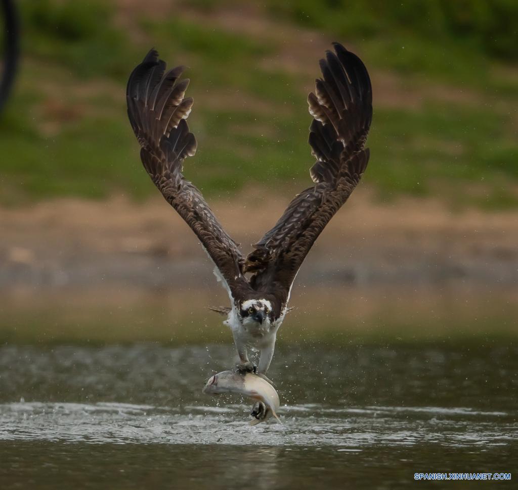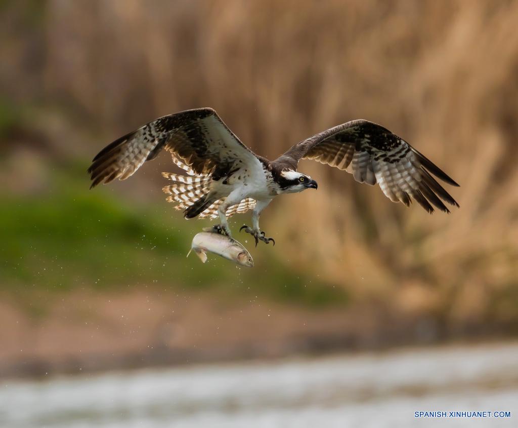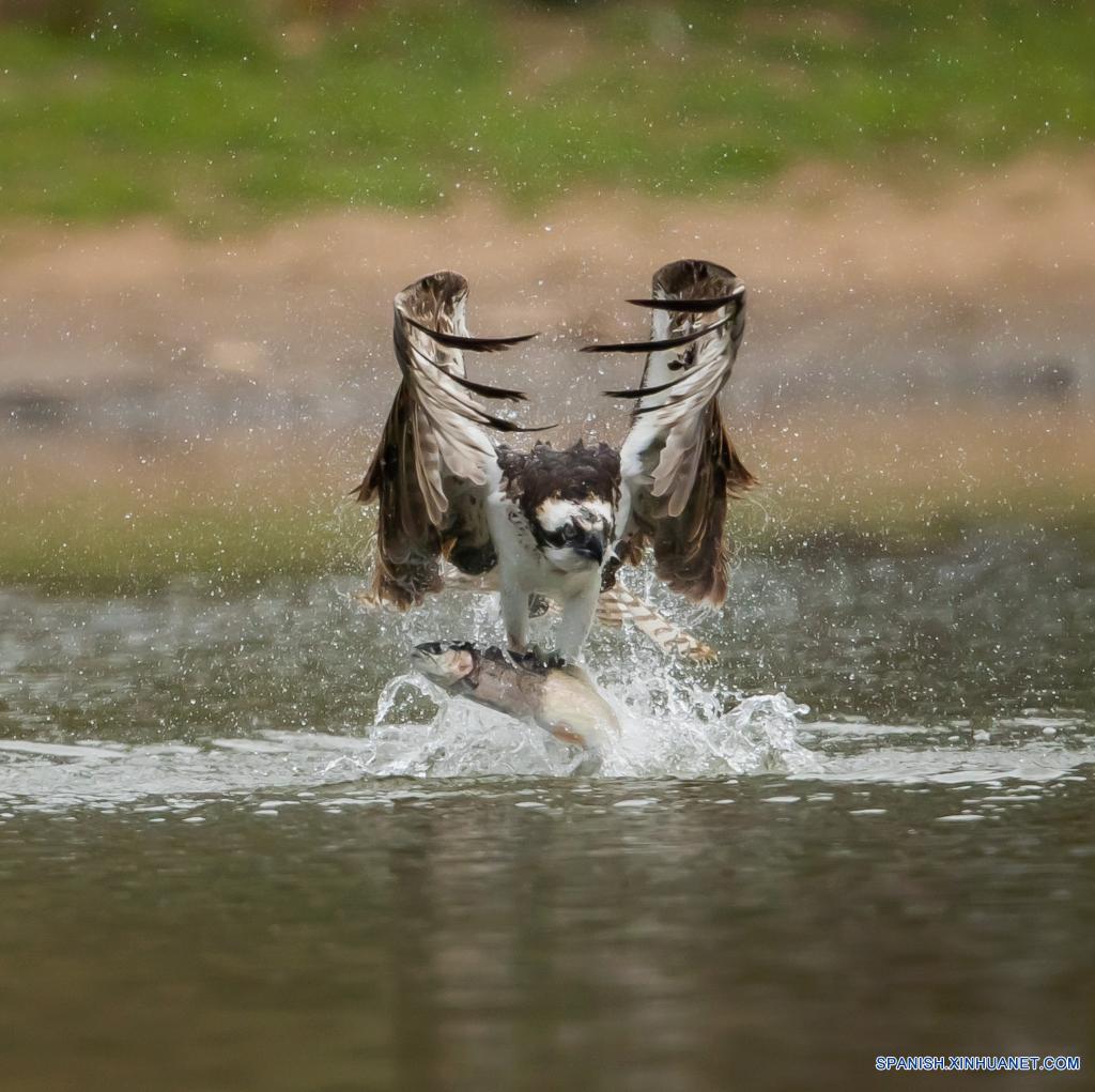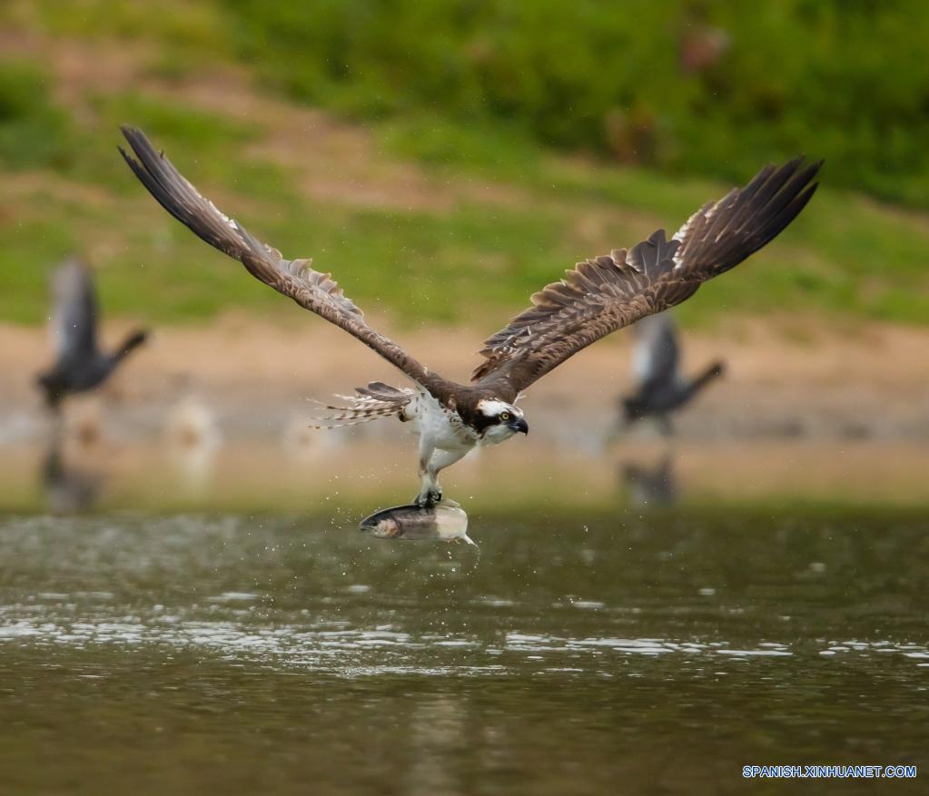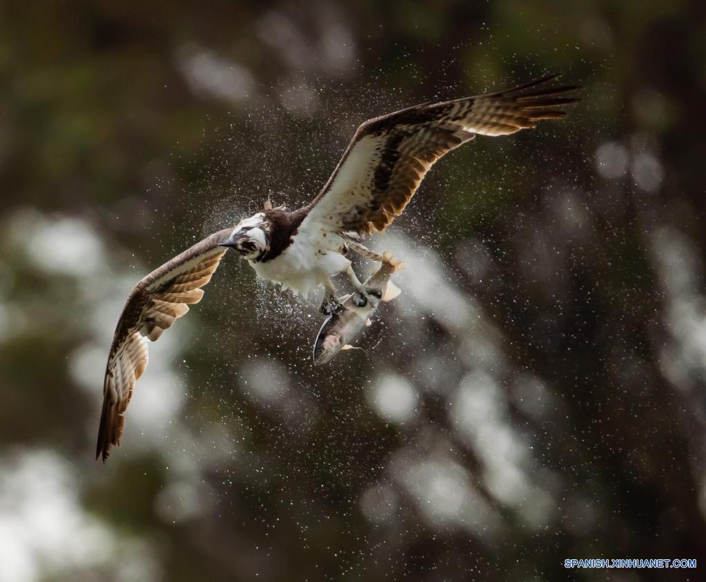 SAN FRANCISCO, 19 marzo, 2022 (Xinhua) -- Imagen del 17 de marzo de 2022 de un águila marina capturando un pez mientras vuela en un parque, en Milpitas, San Francisco, Estados Unidos. (Xinhua/Dong Xudong)