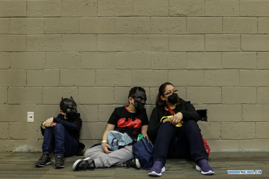 CIUDAD DE MEXICO, 25 marzo, 2022 (Xinhua) -- Personas toman un descanso durante La Mole Convention, en la Ciudad de México, capital de México, el 25 de marzo de 2022. Celebrando su 25 aniversario, La Mole Convention se realiza del 25 al 27 de marzo en el World Trade Center de la Ciudad de México donde habrá estands de venta, comics y áreas de entretenimiento. (Xinhua/Francisco Cañedo)