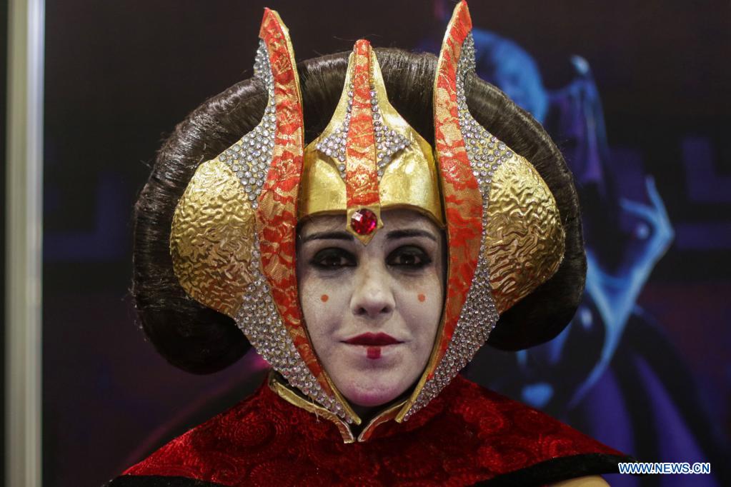 CIUDAD DE MEXICO, 25 marzo, 2022 (Xinhua) -- Una mujer disfrazada reacciona durante La Mole Convention, en la Ciudad de México, capital de México, el 25 de marzo de 2022. Celebrando su 25 aniversario, La Mole Convention se realiza del 25 al 27 de marzo en el World Trade Center de la Ciudad de México donde habrá estands de venta, comics y áreas de entretenimiento. (Xinhua/Francisco Cañedo)