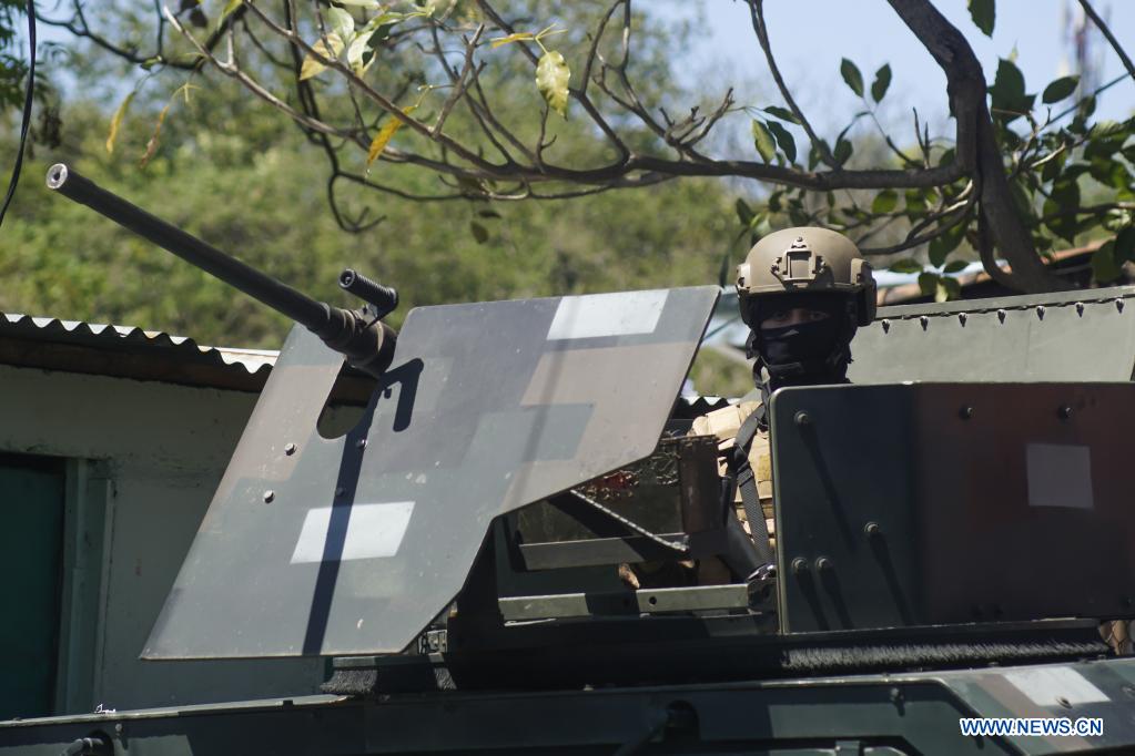 SAN SALVADOR, 27 marzo, 2022 (Xinhua) -- Un soldado del Ejército salvadoreño vigila a bordo de un vehículo durante un operativo de seguridad, en el departamento de San Salvador, El Salvador, el 27 de marzo de 2022. La Asamblea Legislativa de El Salvador aprobó el domingo la solicitud del presidente Nayib Bukele para establecer un régimen de excepción ante una oleada de homicidios que aqueja al país. (Xinhua/Alexander Peña)
