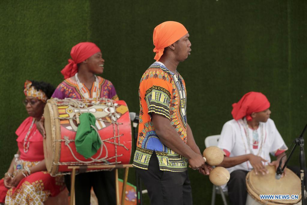 TEGUCIGALPA, 1 abril, 2022 (Xinhua) -- Hombres la etnia garífuna participan en la conmemoración de los 225 años de la Herencia Africana en Honduras, en Tegucigalpa, Honduras, el 1 de abril de 2022. (Xinhua/Rafael Ochoa)