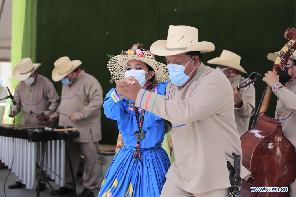 TEGUCIGALPA, 1 abril, 2022 (Xinhua) -- Integrantes del Cuadro Nacional de Danzas Folclóricas de Honduras participan en la conmemoración de los 225 años de la Herencia Africana en Honduras, en Tegucigalpa, Honduras, el 1 de abril de 2022. (Xinhua/Rafael Ochoa)