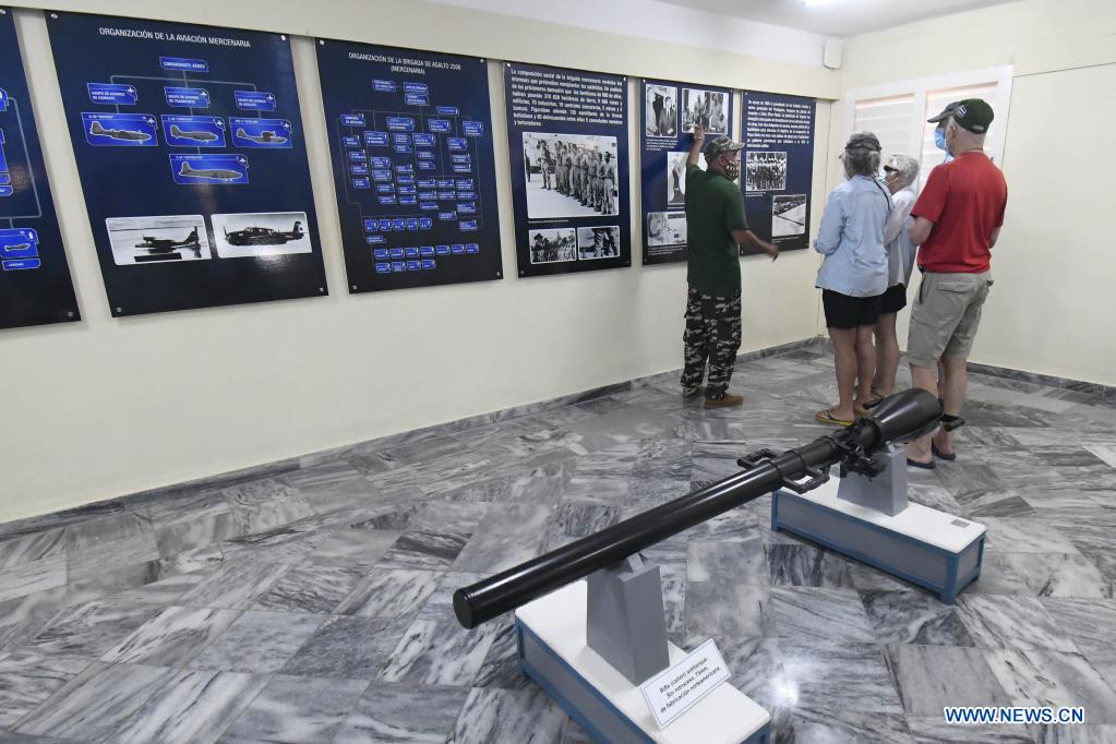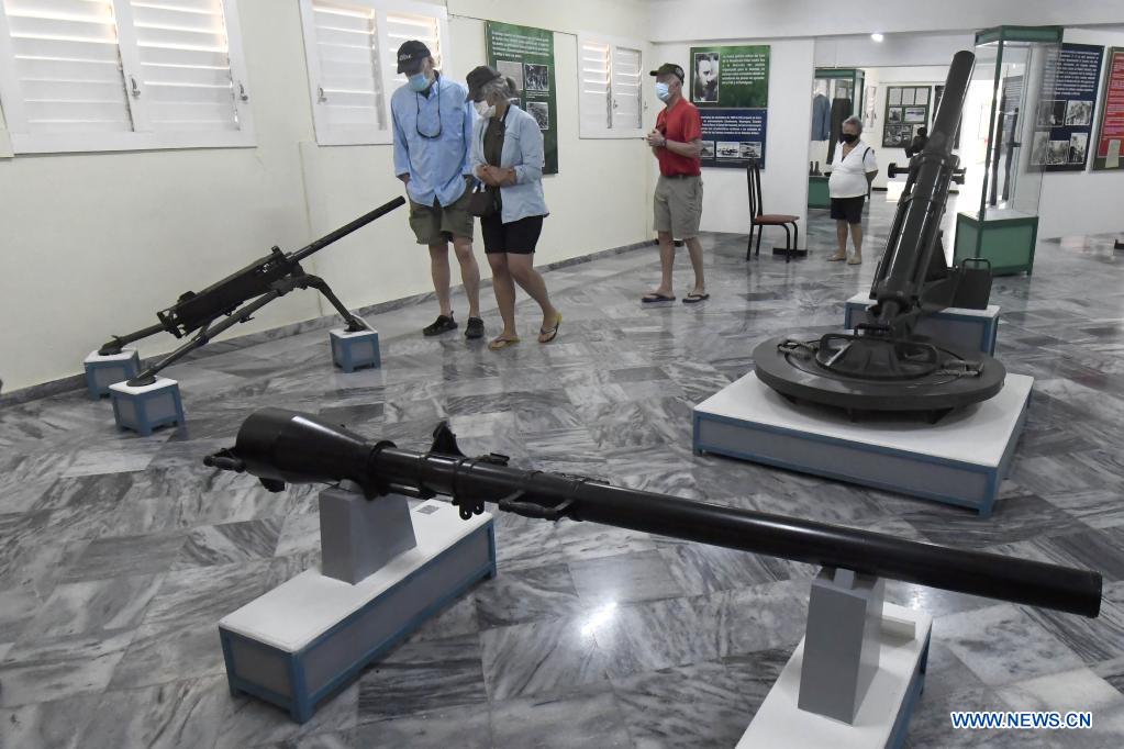 MATANZAS, 3 abril, 2022 (Xinhua) -- Imagen del 30 de marzo de 2022 de turistas extranjeros observando armamento exhibido en el Museo de Playa Girón, en Matanzas, Cuba. El museo, abierto en 1976, conserva casi un millar de objetos vinculados a la batalla que se llevó a cabo en esa zona, entre ellos armas, documentos y fotografías. (Xinhua/Joaquín Hernández)