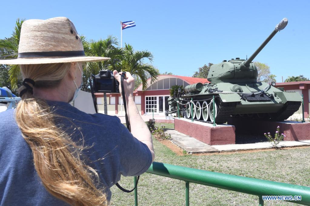 MATANZAS, 3 abril, 2022 (Xinhua) -- Imagen del 30 de marzo de 2022 de una turista extranjera tomando fotografías a un tanque de guerra exhibido en el Museo de Playa Girón, en Matanzas, Cuba. El museo, abierto en 1976, conserva casi un millar de objetos vinculados a la batalla que se llevó a cabo en esa zona, entre ellos armas, documentos y fotografías. (Xinhua/Joaquín Hernández)