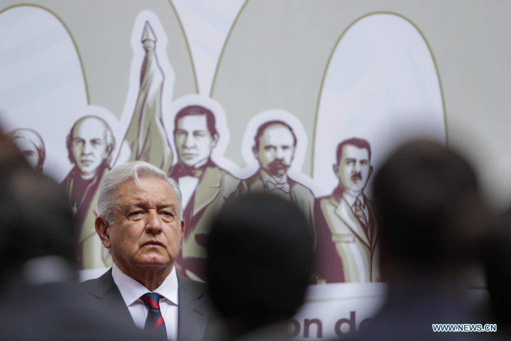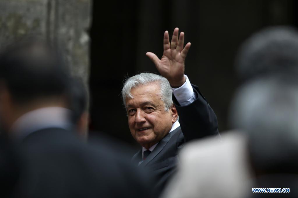 CIUDAD DE MEXICO, 12 abril, 2022 (Xinhua) -- El presidente mexicano, Andrés Manuel López Obrador, se despide al finalizar el informe "100 Días, Cuarto Año de Gobierno", en el Patio de Honor de Palacio Nacional, en la Ciudad de México, capital de México, el 12 de abril de 2022. (Xinhua/Francisco Cañedo)