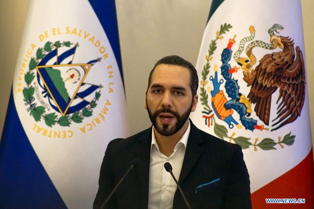 SAN SALVADOR, 6 mayo, 2022 (Xinhua) -- El presidente salvadoreño, Nayib Bukele, habla durante una ceremonia de bienvenida en la Casa Presidencial, en San Salvador, capital de El Salvador, el 6 de mayo de 2022. Bukele y el presidente mexicano, Andrés Manuel López Obrador, acordaron duplicar los programas mexicanos Sembrando Vida y Jóvenes Construyendo el Futuro, con los cuales se busca persuadir a la población de salir de su país para encaminarse a Estados Unidos. (Xinhua/Alexander Peña)