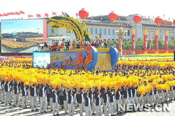 Carrozas presenten en gran desfile del Día Nacional de China