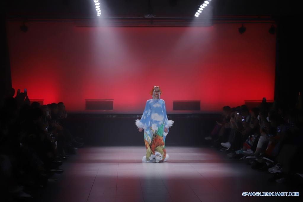 SAO PAULO, 2 junio, 2022 (Xinhua) -- Un modelo presenta una creación de la colección de la marca Meninos Rei durante la Semana de la Moda de Sao Paulo, en Sao Paulo, Brasil, el 2 de junio de 2022. (Xinhua/Rahel Patrasso)