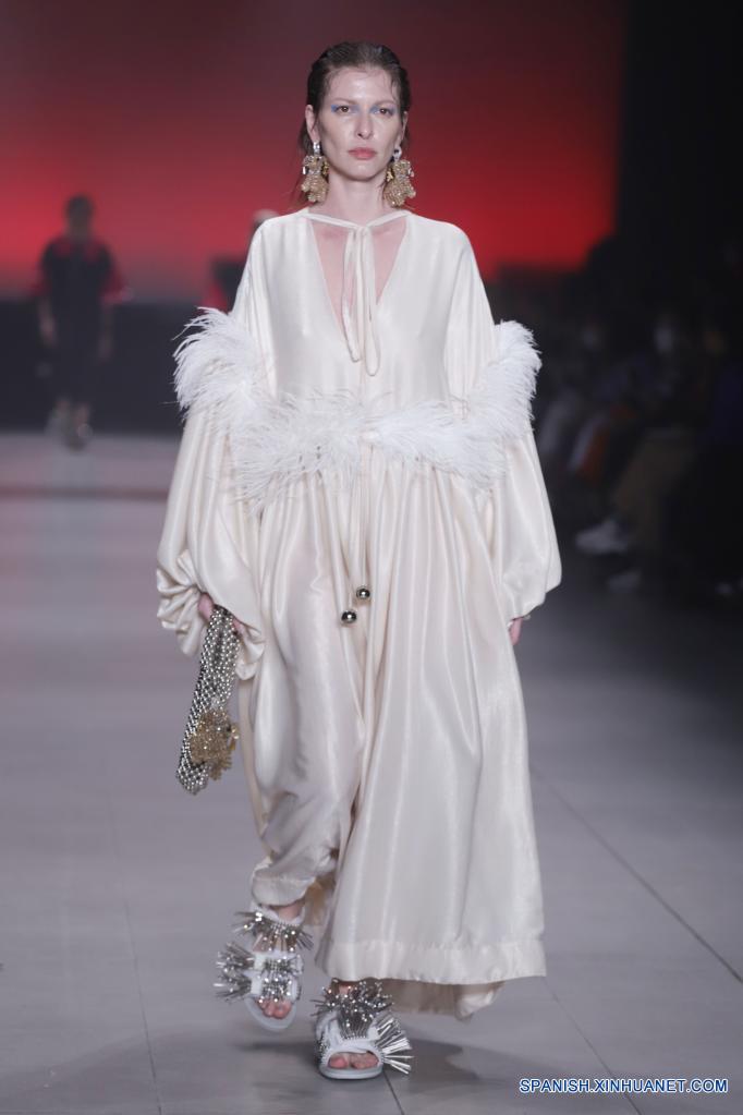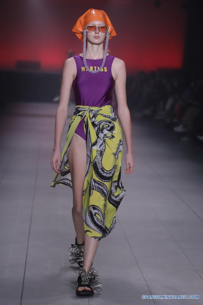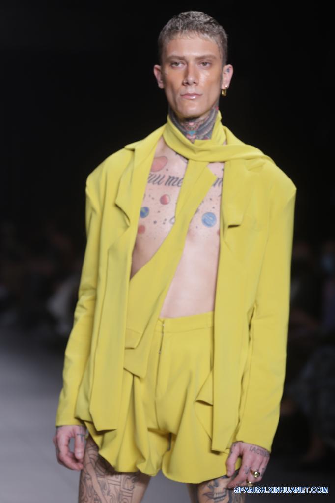 SAO PAULO, 3 junio, 2022 (Xinhua) -- Un modelo presenta una creación de la marca Martins durante la Semana de la Moda de Sao Paulo, en Sao Paulo, Brasil, el 3 de junio de 2022. (Xinhua/Rahel Patrasso)