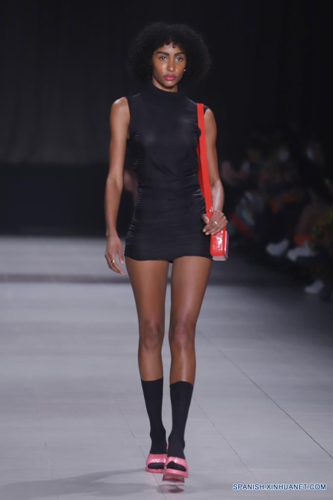 SAO PAULO, 3 junio, 2022 (Xinhua) -- Una modelo presenta una creación de la marca Martins durante la Semana de la Moda de Sao Paulo, en Sao Paulo, Brasil, el 3 de junio de 2022. (Xinhua/Rahel Patrasso)