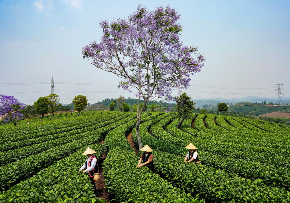 Agricultores recolectan hojas de té en Pu'er, Yunnan