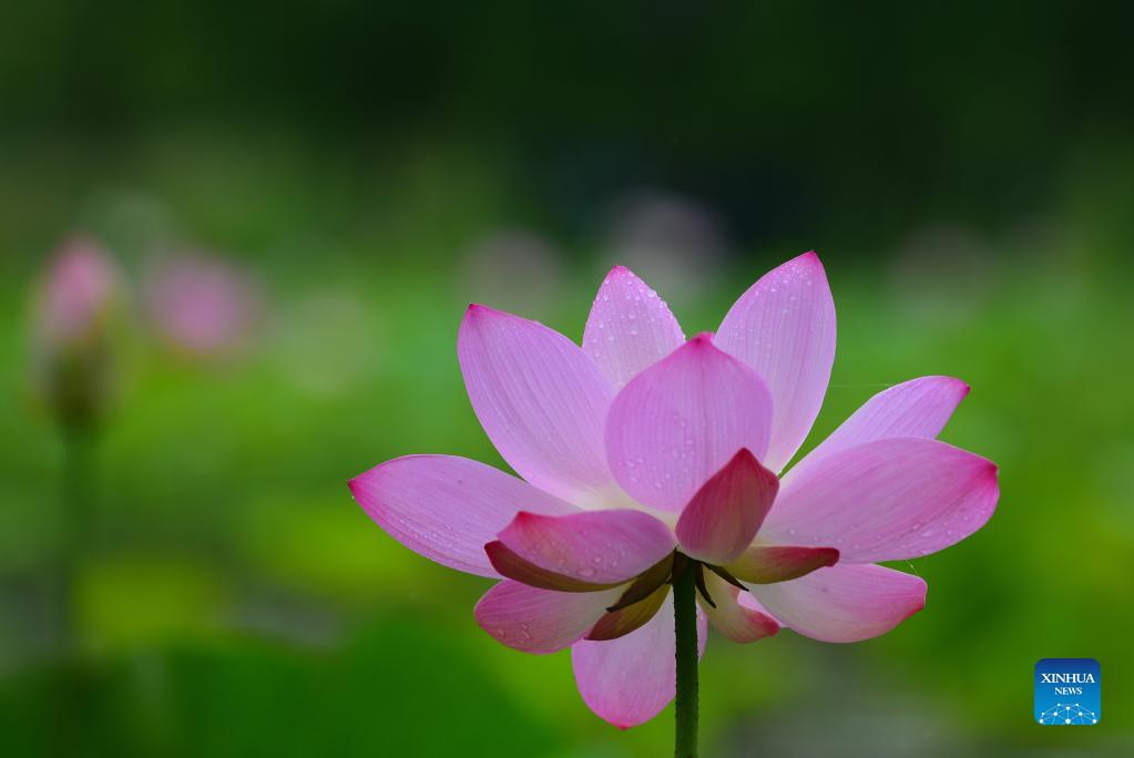 WUXI, 12 junio, 2022 (Xinhua) -- Imagen del 12 de junio de 2022 de una flor de loto en un parque de humedales, en Wuxi, provincia de Jiangsu, en el este de China. (XinhuaHuan Yueliang)