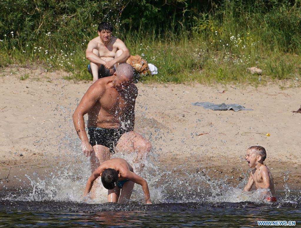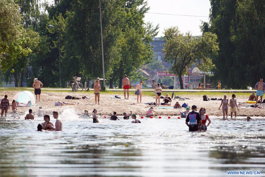 RIGA, 28 junio, 2022 (Xinhua) -- Imagen del 27 de junio de 2022 de personas refrescándose en el río Daugava, en Riga, Letonia. Letonia emitió el lunes una advertencia roja por calor extremo ya que el mercurio superó los 30 grados centígrados, un fuerte aumento en el país báltico conocido por su suave y agradable verano. (Xinhua/Janis Laizans)