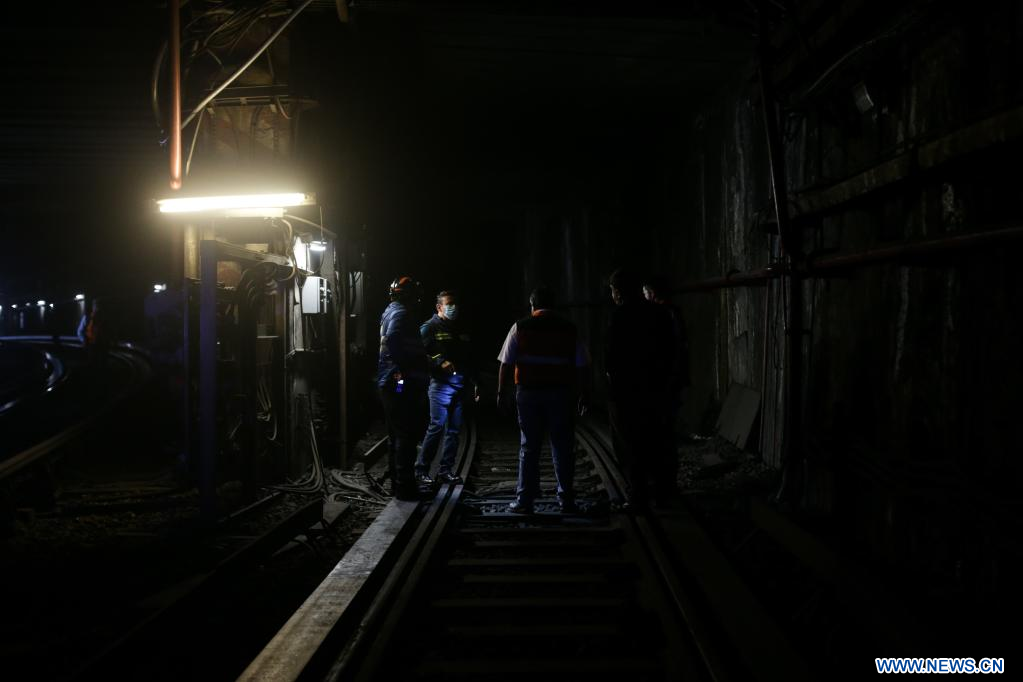 CIUDAD DE MEXICO, 7 julio, 2022 (Xinhua) -- Trabajadores del Sistema de Transporte Colectivo (STC) Metro supervisan durante un recorrido previo al inicio de las obras de modernización de un tramo de la Línea 1 del STC Metro, en la Ciudad de México, capital de México, el 7 de julio de 2022. (Xinhua/Francisco Cañedo)