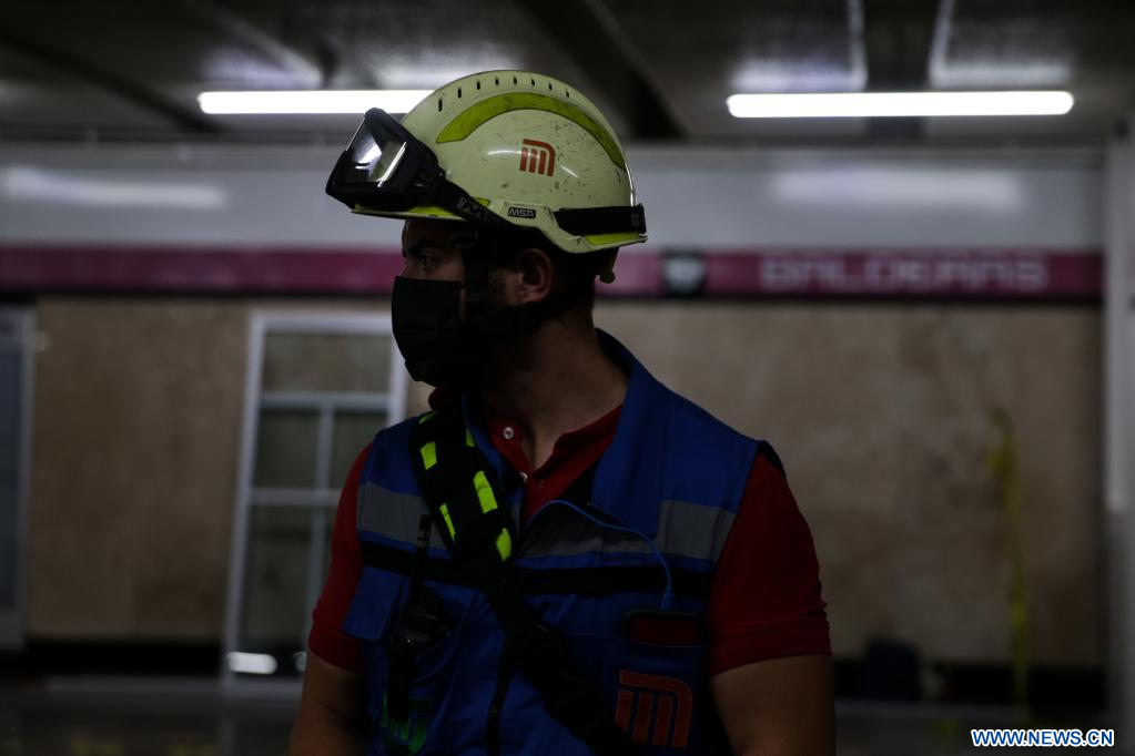 CIUDAD DE MEXICO, 7 julio, 2022 (Xinhua) -- Un trabajador del Sistema de Transporte Colectivo (STC) Metro observa durante un recorrido previo al inicio de las obras de modernización de un tramo de la Línea 1 del STC Metro, en la Ciudad de México, capital de México, el 7 de julio de 2022. (Xinhua/Francisco Cañedo)