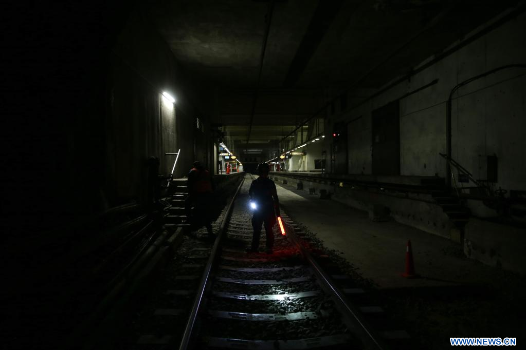CIUDAD DE MEXICO, 14 julio, 2022 (Xinhua) -- Trabajadores del Sistema de Transporte Colectivo (STC) Metro supervisan el avance de las obras de rehabilitación de la Línea 12 del STC Metro, en la Ciudad de México, capital de México, el 14 de julio de 2022. (Xinhua/Francisco Cañedo)