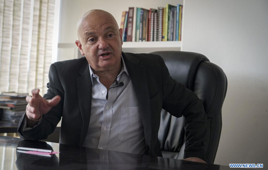 QUITO, 15 julio, 2022 (Xinhua) -- Imagen del 14 de julio de 2022 de Decio Machado, analista político internacional, hablando durante una entrevista con la Agencia de Noticias Xinhua, en Quito, capital de Ecuador. Las declaraciones a la prensa del ex asesor de seguridad nacional de Estados Unidos, John Bolton, en las que admitió haber ayudado a planificar golpes de Estado en el extranjero, confirmaron la "histórica injerencia norteamericana" en los asuntos internos de otros países, afirmó el jueves Machado. (Xinhua/Santiago Armas)