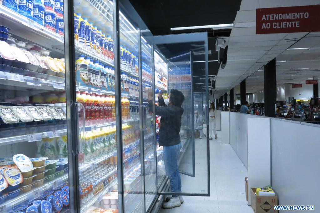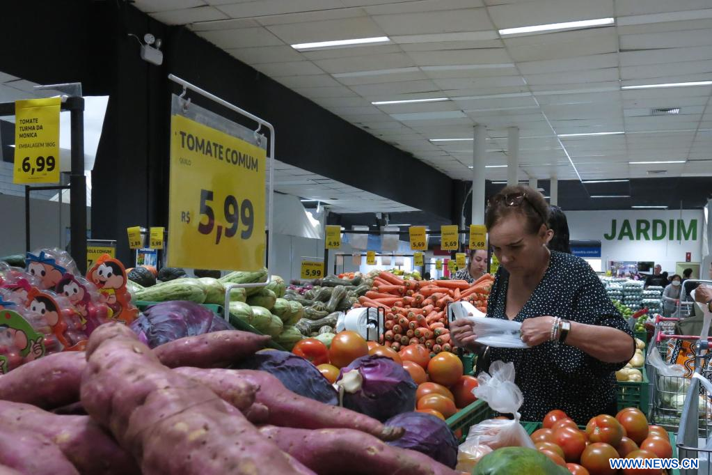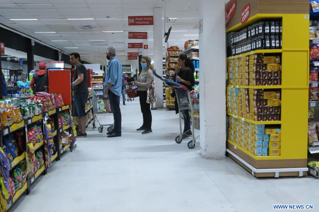 SAO PAULO, 25 julio, 2022 (Xinhua) -- Clientes compran en un supermercado, en Sao Paulo, Brasil, el 25 de julio de 2022. El mercado financiero brasileño elevó de 1,75 a 1,93 por ciento su previsión de crecimiento del Producto Interno Bruto en 2022 y la modificó de 0,50 a 0,49 por ciento para 2023, difundió el lunes el Banco Central de Brasil. (Xinhua/Rahel Patrasso)