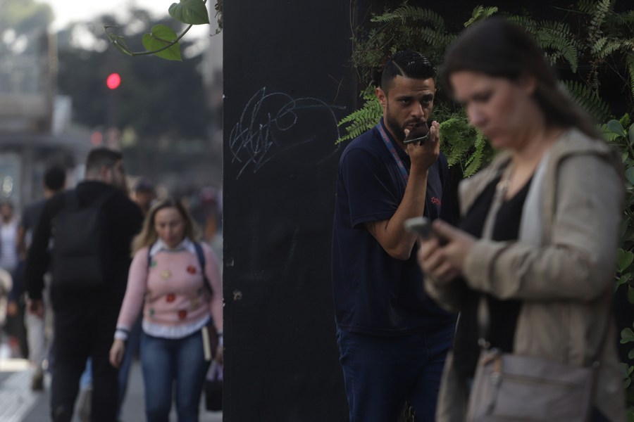Personas usan teléfonos móviles, en Sao Paulo, Brasil, el 3 de agosto de 2022. (Xinhua/Rahel Patrasso)