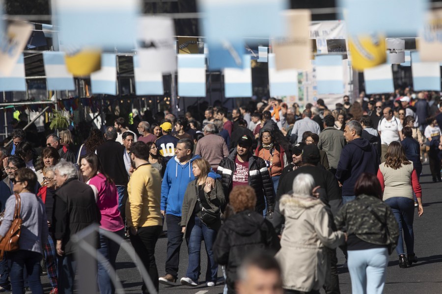 Personas recorren la cuarta edición del Campeonato Federal del Asado, en Buenos Aires, capital de Argentina, el 14 de agosto de 2022. (Xinhua/Martín Zabala)