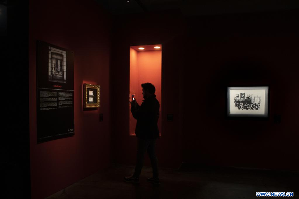 BUENOS AIRES, 29 agosto, 2022 (Xinhua) -- Un hombre visita la exposición "¿Genio o Vándalo?" del artista británico Banksy, en el predio ferial La Rural, en Buenos Aires, Argentina, el 29 de agosto de 2022. La ciudad de Buenos Aires albergará a partir del martes la exposición "¿Genio o Vándalo?" del artista británico Banksy, una atractiva muestra de inmersión en sus obras emblemáticas, que por primera vez se presenta en Argentina. (Xinhua/Martín Zabala)