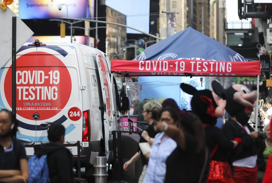 Imagen del 17 de mayo de 2022 de un sitio de pruebas para la COVID-19 en Times Square, en Nueva York, Estados Unidos. (Xinhua/Wang Ying)