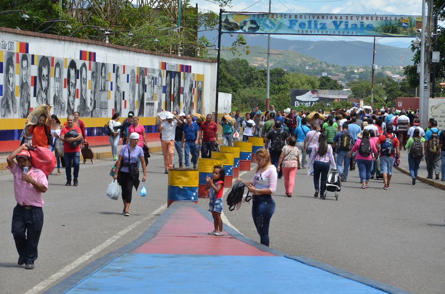 Personas caminan en el puente Simón Bolívar, fronterizo con Colombia, en San Antonio del Táchira, Venezuela, el 8 de junio de 2019. (Xinhua/Str)