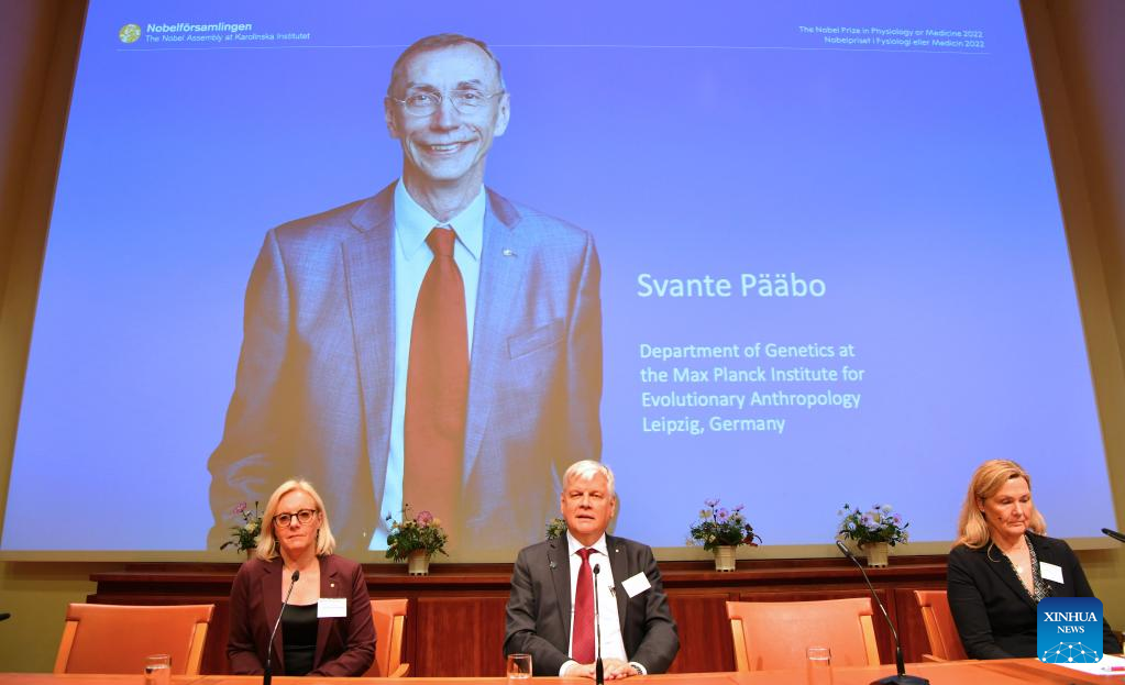 ESTOCOLMO, 3 oct (Xinhua) -- El genetista sueco Svante Paabo ganó el Premio Nobel de Fisiología y Medicina 2022 por sus descubrimientos "sobre los genomas de los homínidos extintos y la evolución humana", anunció hoy lunes aquí el comité del Nobel.