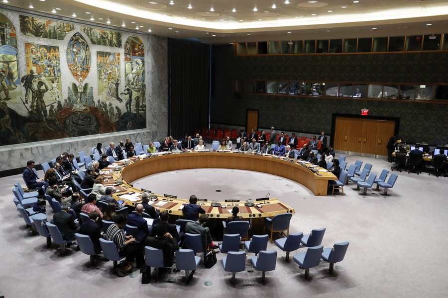 El Consejo de Seguridad de las Naciones Unidas, sostiene un debate abierto sobre la paz y la seguridad en África, en la sede de la ONU en Nueva York, el 7 de octubre de 2019. (Xinhua/Li Muzi)