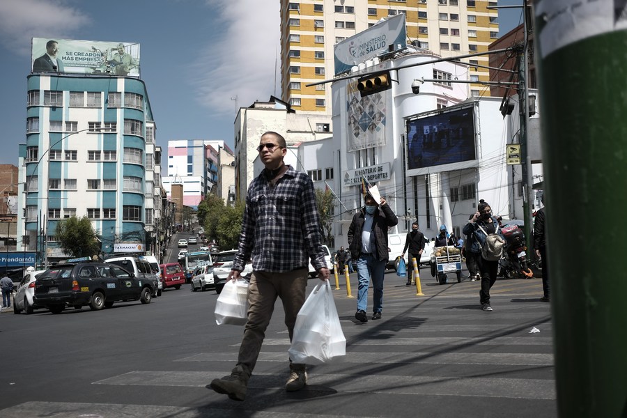 Un hombre camina por una calle, en el centro de La Paz, Bolivia, el 31 de agosto de 2022. (Xinhua/Mateo Romay)