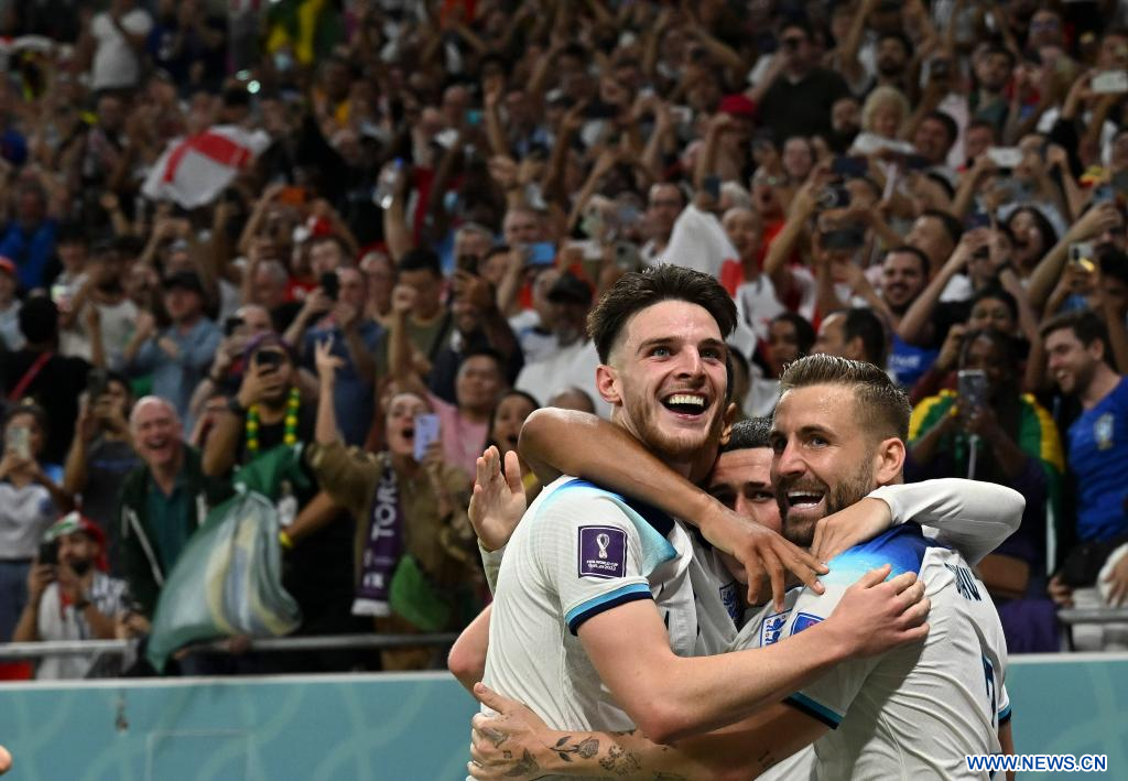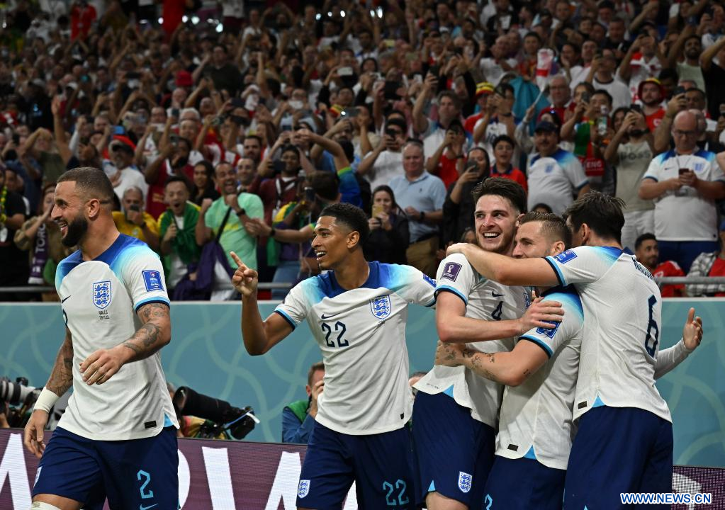 AL RAYYAN, 29 noviembre, 2022 (Xinhua) -- Jugadores de Inglaterra festejan durante el partido correspondiente al Grupo B entre Gales e Inglaterra en la Copa Mundial de la FIFA 2022, en el Estadio Ahmad Bin Ali, en Al Rayyan, Qatar, el 29 de noviembre de 2022. (Xinhua/Wang Dongzhen)