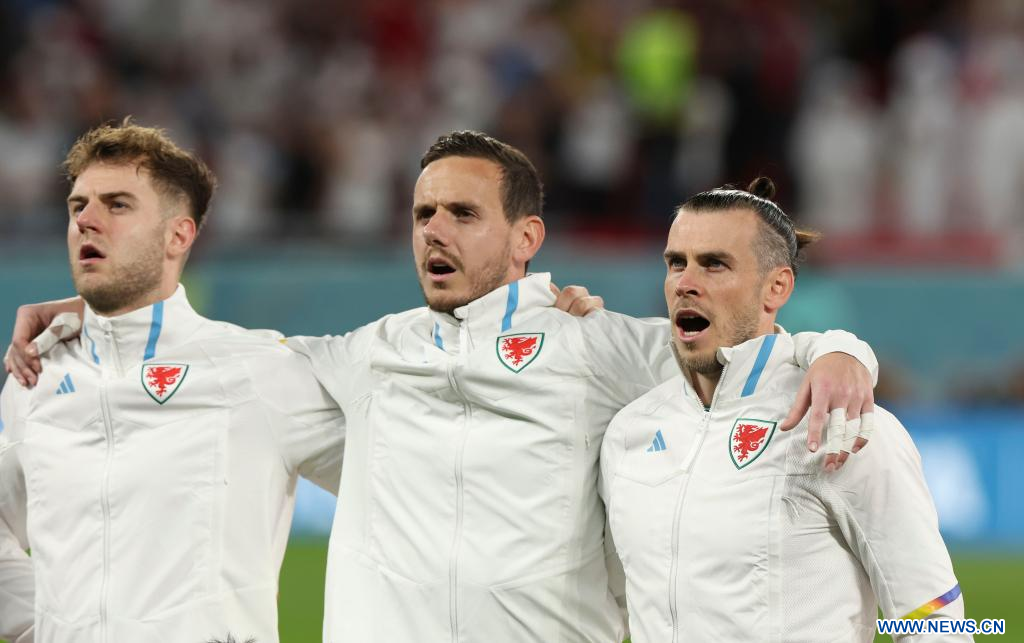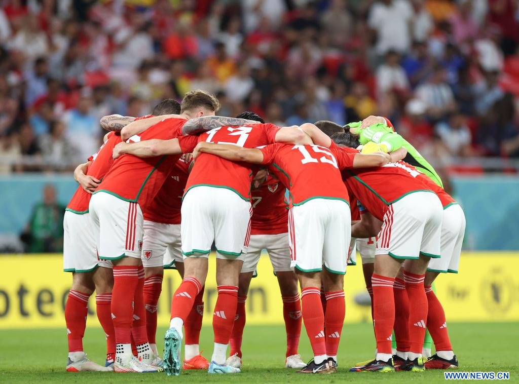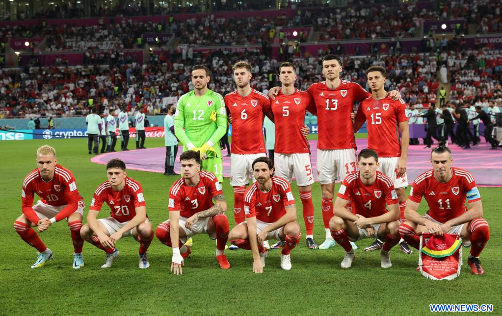 AL RAYYAN, 29 noviembre, 2022 (Xinhua) -- Jugadores titulares de Gales reaccionan previo al partido correspondiente al Grupo B entre Gales e Inglaterra en la Copa Mundial de la FIFA 2022, en el Estadio Ahmad Bin Ali, en Al Rayyan, Qatar, el 29 de noviembre de 2022. (Xinhua/Li Ming)