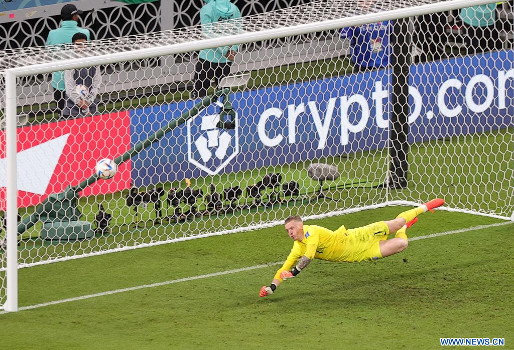 AL RAYYAN, 29 noviembre, 2022 (Xinhua) -- Jordan Pickford, guardameta de Inglaterra, realiza una salvada durante el partido correspondiente al Grupo B entre Gales e Inglaterra en la Copa Mundial de la FIFA 2022, en el Estadio Ahmad Bin Ali, en Al Rayyan, Qatar, el 29 de noviembre de 2022. (Xinhua/Wang Dongzhen)