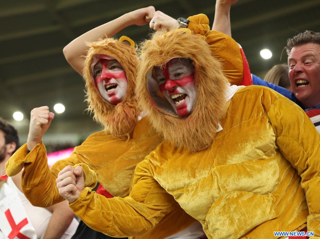 AL RAYYAN, 29 noviembre, 2022 (Xinhua) -- Aficionados de Inglaterra animan previo al partido correspondiente al Grupo B entre Gales e Inglaterra en la Copa Mundial de la FIFA 2022, en el Estadio Ahmad Bin Ali, en Al Rayyan, Qatar, el 29 de noviembre de 2022. (Xinhua/Han Yan)