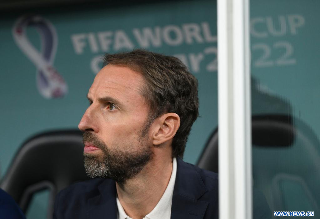 AL RAYYAN, 29 noviembre, 2022 (Xinhua) -- Gareth Southgate, director técnico de Inglaterra, reacciona previo al partido correspondiente al Grupo B entre Gales e Inglaterra en la Copa Mundial de la FIFA 2022, en el Estadio Ahmad Bin Ali, en Al Rayyan, Qatar, el 29 de noviembre de 2022. (Xinhua/Xiao Yijiu)